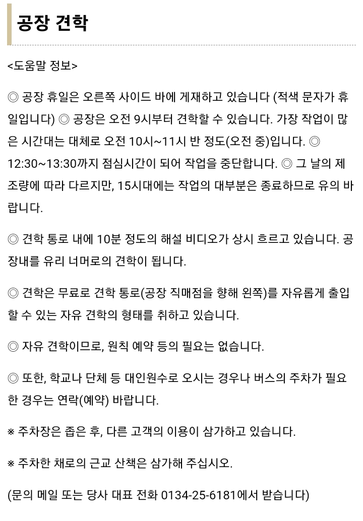 여기는 무료 공장 견학도 가능하다고 하니, 아래 홈페이지 링크에서 휴무일만 확인해보고 방문해보는 걸 추천한다! (예약 필요 X)