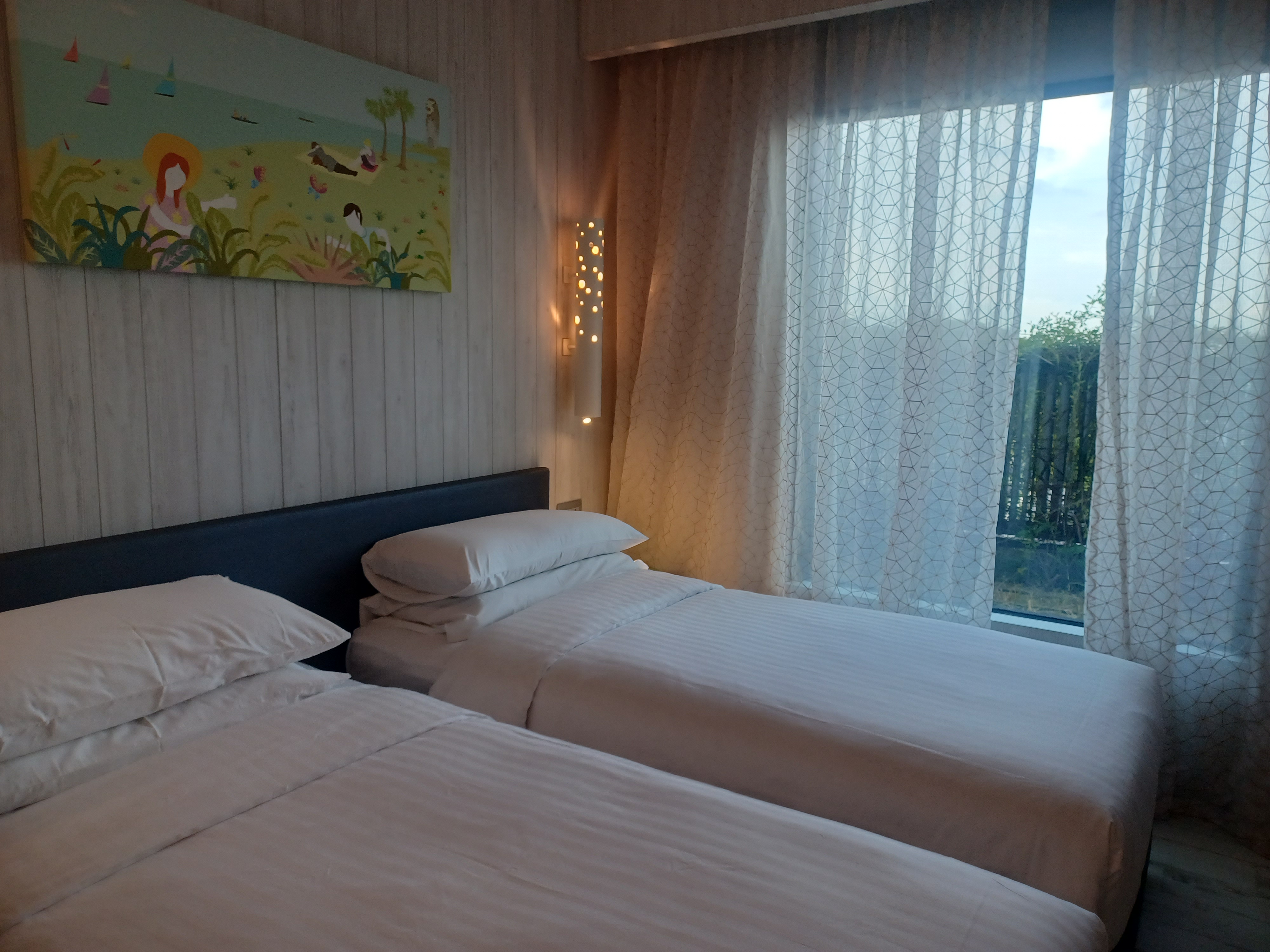 예약한 방은 패밀리룸이었고, 가격은 1박에 375,000원(토요일 기준)이었다. 구조가 특이하게 더블침대룸과 트윈침대룸이 문으로 연결되어 있었다. (어쩐지 예약한 방은 1개인데, 키를 2개줘서 당황했는데, 문만 따로고 내부는 연결되어 있다ㅋㅋㅋ)