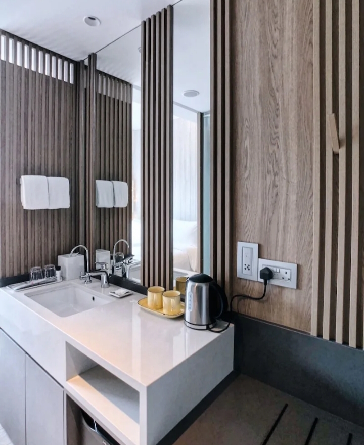 각 방마다 데칼코마니 구조로 세면대와 간이 소파가 있다. 거울이 커서 마음에 들었고, 간이 소파가 있어 짐 정리하기가 수월했다.